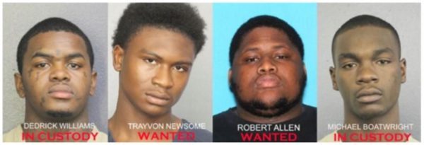 Dedrick Williams, 22, Michael Boatwright, 22, Trayvon Newsome, 20, and Robert Allen, 22, are charged with first-degree murder and armed robbery with a firearm, according to detectives.