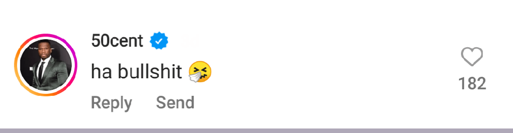 50 Cent responded on the comments section of Hip Hop Wolf’s Instagram page, which had reshared the clip.