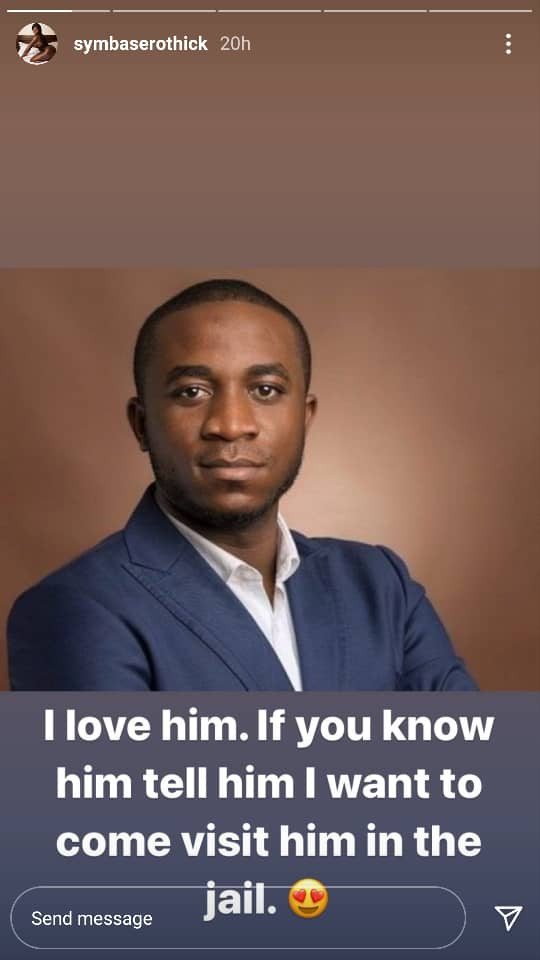 Taking to her Instagram story, Symba declared her love for Obi just bagged a 10-year jail term for fraud in the U.S, and revealed she wants to visit him in jail.