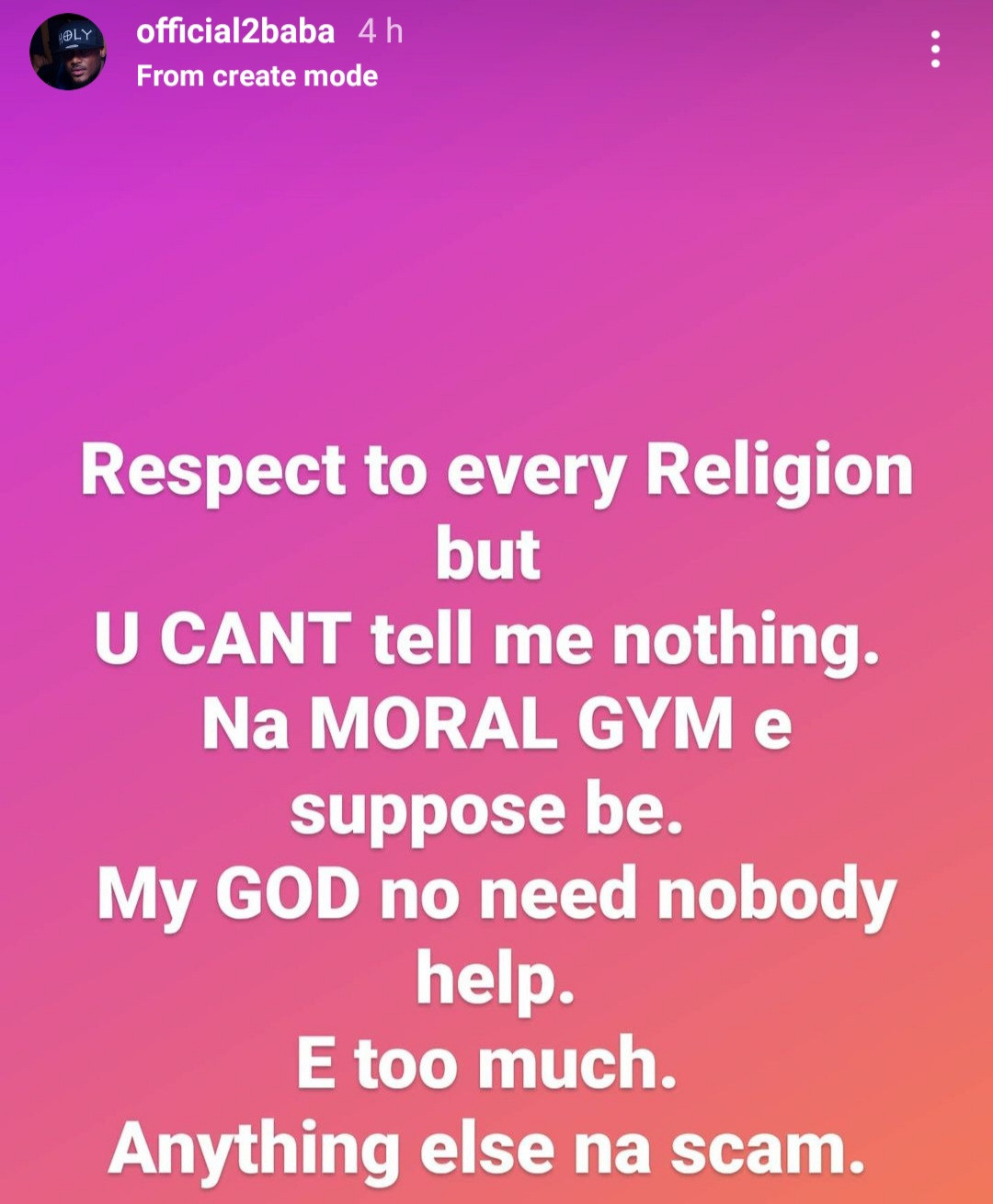 2face said on his IG stories that God is all-sufficient and anyone who claims he is fighting for God is downgrading and insulting Him.