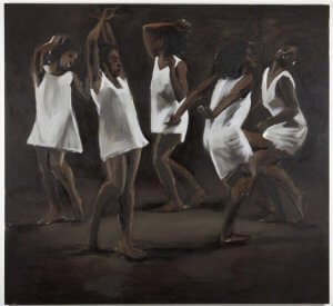“The Hours Behind You” is full of energy and emotion. It depicts a group of women barefoot, wearing simple white shift dresses or cotton nightgowns, lost in a spirited dance.