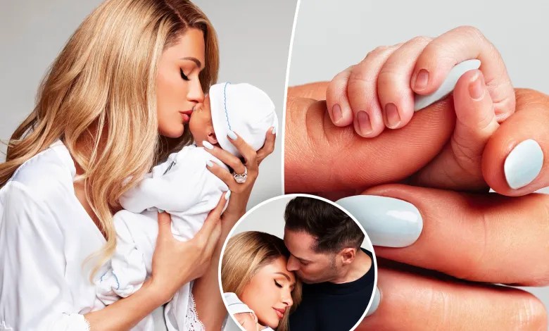 Paris Hilton has shared the first picture of her newborn son’s face as she bravely opened up about her fear of childbirth.