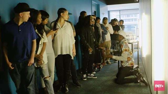In the spoof released by BET, Wizkid is recognized by a loyal fan, who begins to bow and demand for a selfie from the obviously embarrassed artiste.